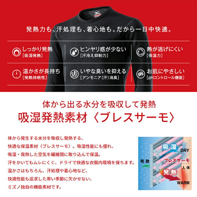 ミズノ mizuno ブレスサーモ 【C2JA0610】Vネック 長袖 シャツ | メンズ インナー 発熱 あったか 暖かい 保温 秋冬 秋 冬 通勤 通学 ビジネス 普段着 ルームウェア 下着 防寒 おしゃれ 男性 シャツ アンダー ウエア 着心地 保温 汗冷え 抑制 ソフト 伸縮 ストレッチ